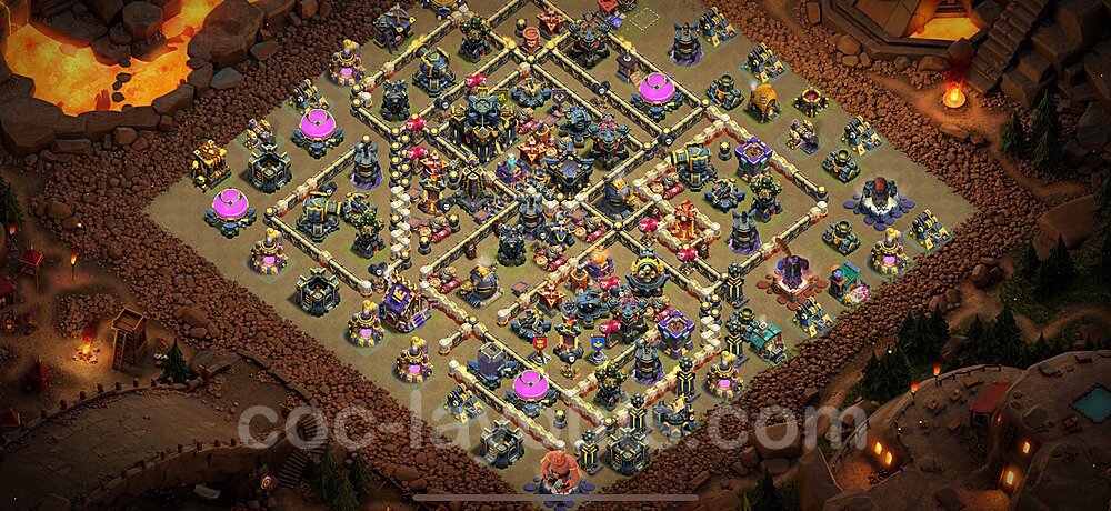 This Town Hall 17 war base is specifically designed to defend against 2-star and 3-star attacks in Clan Wars and Clan War Leagues. The strategic placement of defenses creates multiple compartments that force attackers to use more troops and spells than anticipated. Key defensive structures like Eagle Artillery, Inferno Towers, and X-Bows are positioned to cover crucial sections of the base, making it extremely difficult for opponents to secure a perfect attack. The core of this war base features a centralized Town Hall and Clan Castle, protected by multiple layers of walls and high-damage defenses. This layout forces attackers to commit significant resources just to reach the center, often leaving them without enough firepower to secure the Town Hall destruction. The anti-2-star design ensures that even if attackers breach the outer defenses, they'll struggle to achieve a 50% destruction rating. Air defenses are strategically spread to counter popular air attack strategies like LaLoon (Lava Hound + Balloons) and Electrone (Electro Dragons + Stone Slammer). The symmetrical trap placement and strategic Hidden Tesla positions create deadly surprise elements that can completely derail an attacker's plan. This base has been tested against various meta attack strategies and has consistently proven effective in preventing 3-star attacks.
