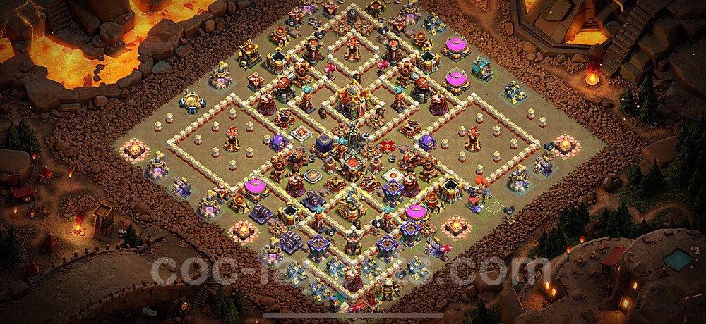 This Town Hall 16 war base is specifically designed to defend against 2-star and 3-star attacks in Clan Wars and Clan War Leagues. The strategic placement of defenses creates multiple compartments that force attackers to use more troops and spells than anticipated. Key defensive structures like Eagle Artillery, Inferno Towers, and X-Bows are positioned to cover crucial sections of the base, making it extremely difficult for opponents to secure a perfect attack. The core of this war base features a centralized Town Hall and Clan Castle, protected by multiple layers of walls and high-damage defenses. This layout forces attackers to commit significant resources just to reach the center, often leaving them without enough firepower to secure the Town Hall destruction. The anti-2-star design ensures that even if attackers breach the outer defenses, they'll struggle to achieve a 50% destruction rating. Air defenses are strategically spread to counter popular air attack strategies like LaLoon (Lava Hound + Balloons) and Electrone (Electro Dragons + Stone Slammer). The symmetrical trap placement and strategic Hidden Tesla positions create deadly surprise elements that can completely derail an attacker's plan. This base has been tested against various meta attack strategies and has consistently proven effective in preventing 3-star attacks.