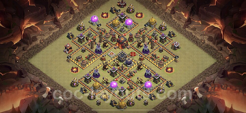 This Town Hall 10 war base is specifically designed to defend against 2-star and 3-star attacks in Clan Wars and Clan War Leagues. The strategic placement of defenses creates multiple compartments that force attackers to use more troops and spells than anticipated. Key defensive structures like Eagle Artillery, Inferno Towers, and X-Bows are positioned to cover crucial sections of the base, making it extremely difficult for opponents to secure a perfect attack. The core of this war base features a centralized Town Hall and Clan Castle, protected by multiple layers of walls and high-damage defenses. This layout forces attackers to commit significant resources just to reach the center, often leaving them without enough firepower to secure the Town Hall destruction. The anti-2-star design ensures that even if attackers breach the outer defenses, they'll struggle to achieve a 50% destruction rating. Air defenses are strategically spread to counter popular air attack strategies like LaLoon (Lava Hound + Balloons) and Electrone (Electro Dragons + Stone Slammer). The symmetrical trap placement and strategic Hidden Tesla positions create deadly surprise elements that can completely derail an attacker's plan. This base has been tested against various meta attack strategies and has consistently proven effective in preventing 3-star attacks.