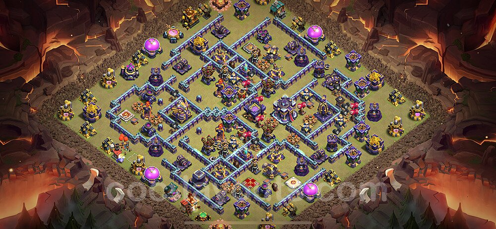 This Town Hall 15 war base is specifically designed to defend against 2-star and 3-star attacks in Clan Wars and Clan War Leagues. The strategic placement of defenses creates multiple compartments that force attackers to use more troops and spells than anticipated. Key defensive structures like Eagle Artillery, Inferno Towers, and X-Bows are positioned to cover crucial sections of the base, making it extremely difficult for opponents to secure a perfect attack. The core of this war base features a centralized Town Hall and Clan Castle, protected by multiple layers of walls and high-damage defenses. This layout forces attackers to commit significant resources just to reach the center, often leaving them without enough firepower to secure the Town Hall destruction. The anti-2-star design ensures that even if attackers breach the outer defenses, they'll struggle to achieve a 50% destruction rating. Air defenses are strategically spread to counter popular air attack strategies like LaLoon (Lava Hound + Balloons) and Electrone (Electro Dragons + Stone Slammer). The symmetrical trap placement and strategic Hidden Tesla positions create deadly surprise elements that can completely derail an attacker's plan. This base has been tested against various meta attack strategies and has consistently proven effective in preventing 3-star attacks.