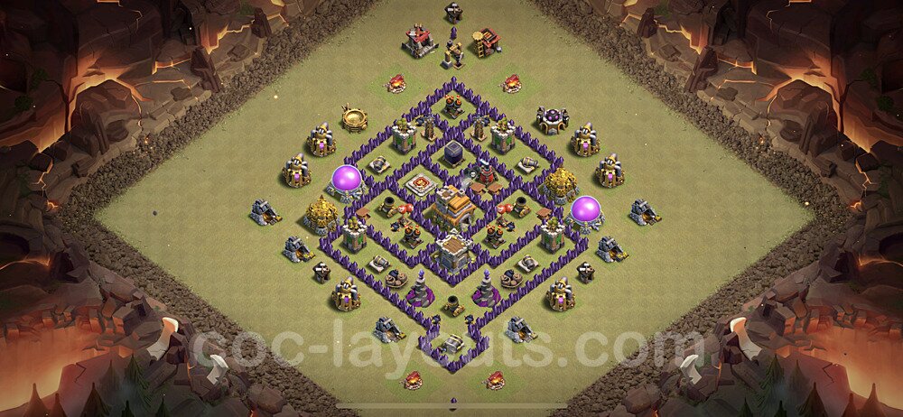 This Town Hall 7 war base is specifically designed to defend against 2-star and 3-star attacks in Clan Wars and Clan War Leagues. The strategic placement of defenses creates multiple compartments that force attackers to use more troops and spells than anticipated. Key defensive structures like Eagle Artillery, Inferno Towers, and X-Bows are positioned to cover crucial sections of the base, making it extremely difficult for opponents to secure a perfect attack. The core of this war base features a centralized Town Hall and Clan Castle, protected by multiple layers of walls and high-damage defenses. This layout forces attackers to commit significant resources just to reach the center, often leaving them without enough firepower to secure the Town Hall destruction. The anti-2-star design ensures that even if attackers breach the outer defenses, they'll struggle to achieve a 50% destruction rating. Air defenses are strategically spread to counter popular air attack strategies like LaLoon (Lava Hound + Balloons) and Electrone (Electro Dragons + Stone Slammer). The symmetrical trap placement and strategic Hidden Tesla positions create deadly surprise elements that can completely derail an attacker's plan. This base has been tested against various meta attack strategies and has consistently proven effective in preventing 3-star attacks.
