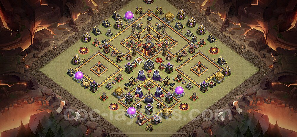This Town Hall 10 war base is specifically designed to defend against 2-star and 3-star attacks in Clan Wars and Clan War Leagues. The strategic placement of defenses creates multiple compartments that force attackers to use more troops and spells than anticipated. Key defensive structures like Eagle Artillery, Inferno Towers, and X-Bows are positioned to cover crucial sections of the base, making it extremely difficult for opponents to secure a perfect attack. The core of this war base features a centralized Town Hall and Clan Castle, protected by multiple layers of walls and high-damage defenses. This layout forces attackers to commit significant resources just to reach the center, often leaving them without enough firepower to secure the Town Hall destruction. The anti-2-star design ensures that even if attackers breach the outer defenses, they'll struggle to achieve a 50% destruction rating. Air defenses are strategically spread to counter popular air attack strategies like LaLoon (Lava Hound + Balloons) and Electrone (Electro Dragons + Stone Slammer). The symmetrical trap placement and strategic Hidden Tesla positions create deadly surprise elements that can completely derail an attacker's plan. This base has been tested against various meta attack strategies and has consistently proven effective in preventing 3-star attacks.