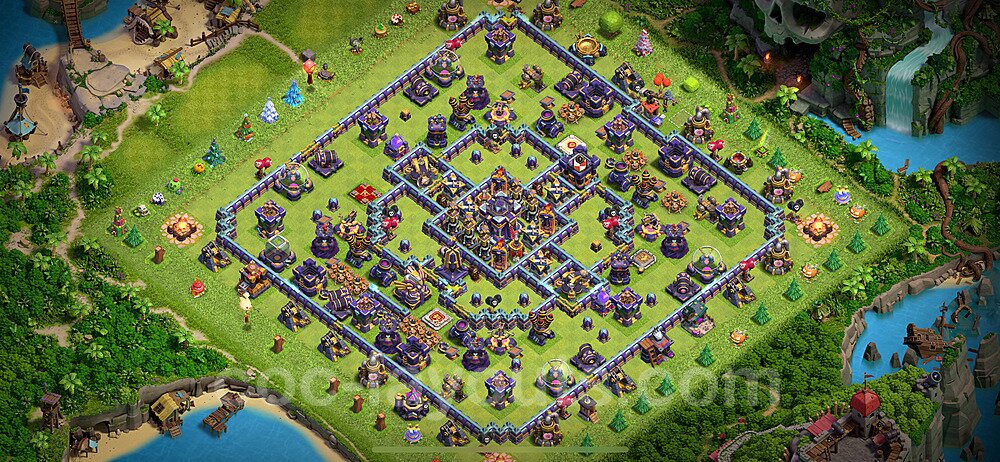 This Town Hall 15 hybrid base offers the best of both worlds - strong resource protection combined with effective trophy defense. The versatile design makes it an excellent choice for players who want to protect their loot while maintaining their trophy count. This balanced approach ensures you don't sacrifice one aspect of defense for another, making it ideal for active players across all league levels. The hybrid layout features centralized resource storages alongside a well-protected Town Hall, with multiple defensive layers that deter both farming raids and trophy pushers. High-value targets are strategically positioned within overlapping defense ranges, forcing attackers to make difficult choices about which objectives to prioritize. The compartmentalized design prevents attackers from easily achieving both loot destruction and the Town Hall kill in a single attack. Defense placement in this hybrid base creates strong coverage against both ground and air attacks. Inferno Towers, X-Bows, and Eagle Artillery work in concert to eliminate threats quickly, while splash damage defenses like Wizard Towers and Bomb Towers counter swarm strategies. The base's funnel-resistant design and strategic trap placement make it effective against popular attack strategies including QC LaLoon (Queen Charge Lava Hound Balloon), Blizzard attacks, and Yeti Smash compositions.