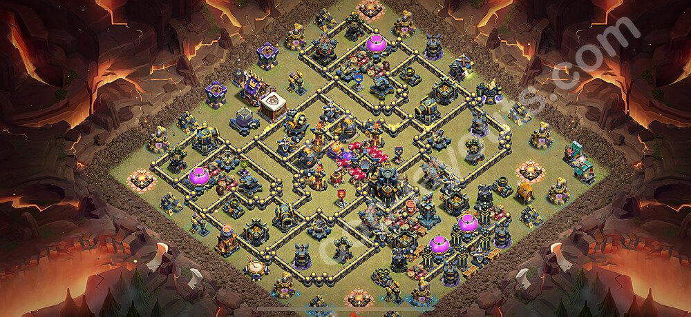 This Town Hall 17 hybrid base offers the best of both worlds - strong resource protection combined with effective trophy defense. The versatile design makes it an excellent choice for players who want to protect their loot while maintaining their trophy count. This balanced approach ensures you don't sacrifice one aspect of defense for another, making it ideal for active players across all league levels. The hybrid layout features centralized resource storages alongside a well-protected Town Hall, with multiple defensive layers that deter both farming raids and trophy pushers. High-value targets are strategically positioned within overlapping defense ranges, forcing attackers to make difficult choices about which objectives to prioritize. The compartmentalized design prevents attackers from easily achieving both loot destruction and the Town Hall kill in a single attack. Defense placement in this hybrid base creates strong coverage against both ground and air attacks. Inferno Towers, X-Bows, and Eagle Artillery work in concert to eliminate threats quickly, while splash damage defenses like Wizard Towers and Bomb Towers counter swarm strategies. The base's funnel-resistant design and strategic trap placement make it effective against popular attack strategies including QC LaLoon (Queen Charge Lava Hound Balloon), Blizzard attacks, and Yeti Smash compositions.
