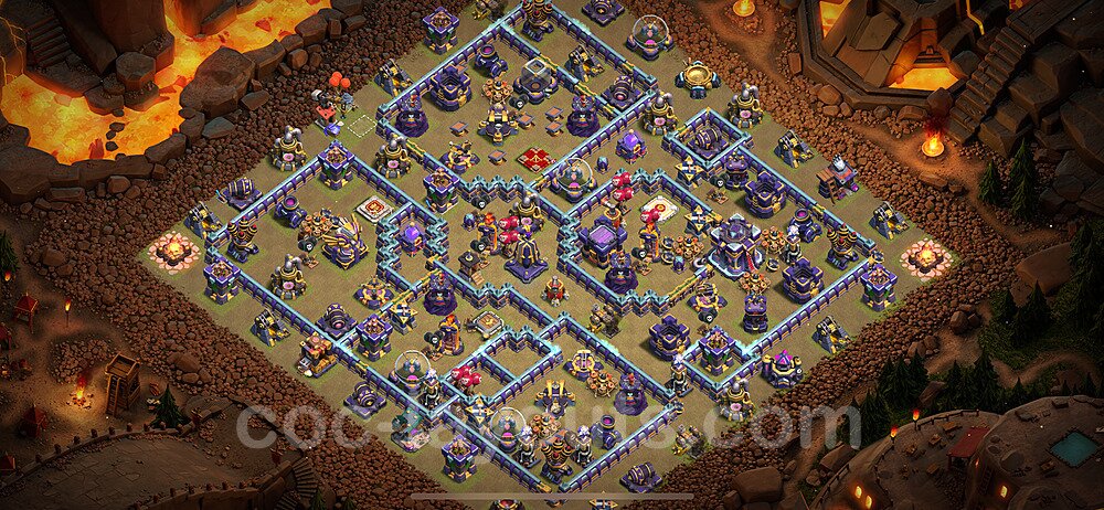 This Town Hall 15 hybrid base offers the best of both worlds - strong resource protection combined with effective trophy defense. The versatile design makes it an excellent choice for players who want to protect their loot while maintaining their trophy count. This balanced approach ensures you don't sacrifice one aspect of defense for another, making it ideal for active players across all league levels. The hybrid layout features centralized resource storages alongside a well-protected Town Hall, with multiple defensive layers that deter both farming raids and trophy pushers. High-value targets are strategically positioned within overlapping defense ranges, forcing attackers to make difficult choices about which objectives to prioritize. The compartmentalized design prevents attackers from easily achieving both loot destruction and the Town Hall kill in a single attack. Defense placement in this hybrid base creates strong coverage against both ground and air attacks. Inferno Towers, X-Bows, and Eagle Artillery work in concert to eliminate threats quickly, while splash damage defenses like Wizard Towers and Bomb Towers counter swarm strategies. The base's funnel-resistant design and strategic trap placement make it effective against popular attack strategies including QC LaLoon (Queen Charge Lava Hound Balloon), Blizzard attacks, and Yeti Smash compositions.