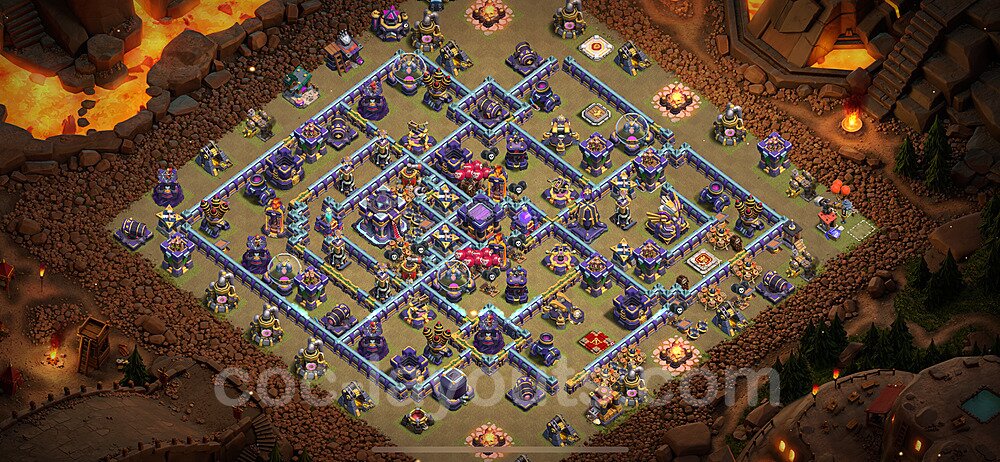 This Town Hall 15 war base is specifically designed to defend against 2-star and 3-star attacks in Clan Wars and Clan War Leagues. The strategic placement of defenses creates multiple compartments that force attackers to use more troops and spells than anticipated. Key defensive structures like Eagle Artillery, Inferno Towers, and X-Bows are positioned to cover crucial sections of the base, making it extremely difficult for opponents to secure a perfect attack. The core of this war base features a centralized Town Hall and Clan Castle, protected by multiple layers of walls and high-damage defenses. This layout forces attackers to commit significant resources just to reach the center, often leaving them without enough firepower to secure the Town Hall destruction. The anti-2-star design ensures that even if attackers breach the outer defenses, they'll struggle to achieve a 50% destruction rating. Air defenses are strategically spread to counter popular air attack strategies like LaLoon (Lava Hound + Balloons) and Electrone (Electro Dragons + Stone Slammer). The symmetrical trap placement and strategic Hidden Tesla positions create deadly surprise elements that can completely derail an attacker's plan. This base has been tested against various meta attack strategies and has consistently proven effective in preventing 3-star attacks.