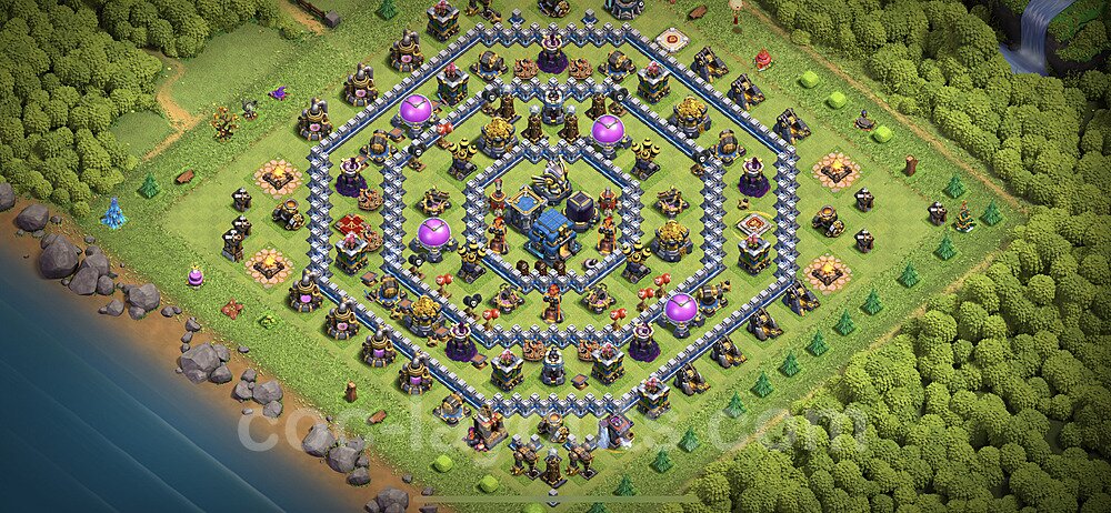 This Town Hall 12 farming base is optimized to protect your resources including Gold, Elixir, and Dark Elixir from raiders. The layout features centralized storages with multiple compartments that make it extremely difficult for attackers to steal large amounts of resources in a single raid. This design philosophy prioritizes resource protection over trophies, making it ideal for players focused on upgrading their village. The strategic placement of resource storages ensures they are well-protected by high-damage defenses like X-Bows, Inferno Towers, and Eagle Artillery. Each storage is surrounded by multiple wall layers and defensive structures, forcing attackers to invest heavily in troops and spells to reach your loot. The farming base design also incorporates strategic dead zones where attackers' troops tend to path inefficiently, wasting time and taking heavy damage from nearby defenses. Collectors and mines are positioned on the outer edges as "bait" while your main storages remain heavily protected in the core. This layout has proven effective against common farming strategies like BARCH (Barbarians + Archers), GoWiPe (Golems + Wizards + Pekka), and mass Miner attacks. The compartmentalized design prevents attackers from funneling straight to your resources, ensuring you maintain your hard-earned loot for important upgrades.