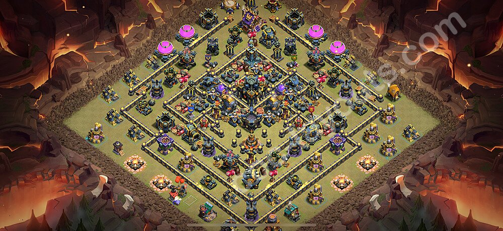 This Town Hall 17 war base is specifically designed to defend against 2-star and 3-star attacks in Clan Wars and Clan War Leagues. The strategic placement of defenses creates multiple compartments that force attackers to use more troops and spells than anticipated. Key defensive structures like Eagle Artillery, Inferno Towers, and X-Bows are positioned to cover crucial sections of the base, making it extremely difficult for opponents to secure a perfect attack. The core of this war base features a centralized Town Hall and Clan Castle, protected by multiple layers of walls and high-damage defenses. This layout forces attackers to commit significant resources just to reach the center, often leaving them without enough firepower to secure the Town Hall destruction. The anti-2-star design ensures that even if attackers breach the outer defenses, they'll struggle to achieve a 50% destruction rating. Air defenses are strategically spread to counter popular air attack strategies like LaLoon (Lava Hound + Balloons) and Electrone (Electro Dragons + Stone Slammer). The symmetrical trap placement and strategic Hidden Tesla positions create deadly surprise elements that can completely derail an attacker's plan. This base has been tested against various meta attack strategies and has consistently proven effective in preventing 3-star attacks.