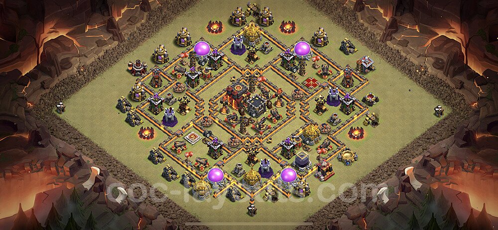 This Town Hall 10 war base is specifically designed to defend against 2-star and 3-star attacks in Clan Wars and Clan War Leagues. The strategic placement of defenses creates multiple compartments that force attackers to use more troops and spells than anticipated. Key defensive structures like Eagle Artillery, Inferno Towers, and X-Bows are positioned to cover crucial sections of the base, making it extremely difficult for opponents to secure a perfect attack. The core of this war base features a centralized Town Hall and Clan Castle, protected by multiple layers of walls and high-damage defenses. This layout forces attackers to commit significant resources just to reach the center, often leaving them without enough firepower to secure the Town Hall destruction. The anti-2-star design ensures that even if attackers breach the outer defenses, they'll struggle to achieve a 50% destruction rating. Air defenses are strategically spread to counter popular air attack strategies like LaLoon (Lava Hound + Balloons) and Electrone (Electro Dragons + Stone Slammer). The symmetrical trap placement and strategic Hidden Tesla positions create deadly surprise elements that can completely derail an attacker's plan. This base has been tested against various meta attack strategies and has consistently proven effective in preventing 3-star attacks.