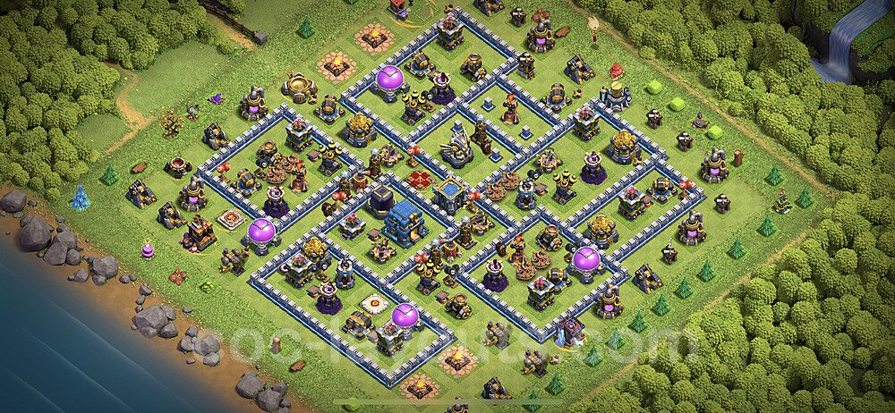 This Town Hall 12 farming base is optimized to protect your resources including Gold, Elixir, and Dark Elixir from raiders. The layout features centralized storages with multiple compartments that make it extremely difficult for attackers to steal large amounts of resources in a single raid. This design philosophy prioritizes resource protection over trophies, making it ideal for players focused on upgrading their village. The strategic placement of resource storages ensures they are well-protected by high-damage defenses like X-Bows, Inferno Towers, and Eagle Artillery. Each storage is surrounded by multiple wall layers and defensive structures, forcing attackers to invest heavily in troops and spells to reach your loot. The farming base design also incorporates strategic dead zones where attackers' troops tend to path inefficiently, wasting time and taking heavy damage from nearby defenses. Collectors and mines are positioned on the outer edges as "bait" while your main storages remain heavily protected in the core. This layout has proven effective against common farming strategies like BARCH (Barbarians + Archers), GoWiPe (Golems + Wizards + Pekka), and mass Miner attacks. The compartmentalized design prevents attackers from funneling straight to your resources, ensuring you maintain your hard-earned loot for important upgrades.