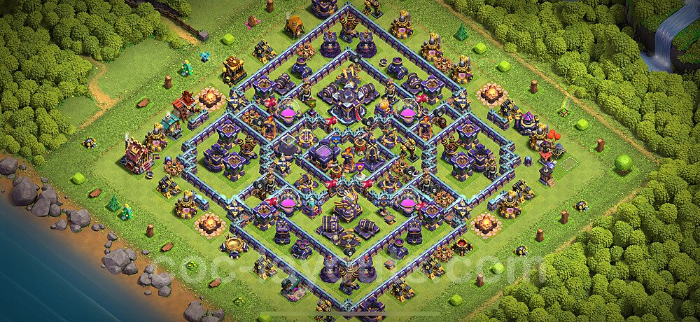 This Town Hall 15 war base is specifically designed to defend against 2-star and 3-star attacks in Clan Wars and Clan War Leagues. The strategic placement of defenses creates multiple compartments that force attackers to use more troops and spells than anticipated. Key defensive structures like Eagle Artillery, Inferno Towers, and X-Bows are positioned to cover crucial sections of the base, making it extremely difficult for opponents to secure a perfect attack. The core of this war base features a centralized Town Hall and Clan Castle, protected by multiple layers of walls and high-damage defenses. This layout forces attackers to commit significant resources just to reach the center, often leaving them without enough firepower to secure the Town Hall destruction. The anti-2-star design ensures that even if attackers breach the outer defenses, they'll struggle to achieve a 50% destruction rating. Air defenses are strategically spread to counter popular air attack strategies like LaLoon (Lava Hound + Balloons) and Electrone (Electro Dragons + Stone Slammer). The symmetrical trap placement and strategic Hidden Tesla positions create deadly surprise elements that can completely derail an attacker's plan. This base has been tested against various meta attack strategies and has consistently proven effective in preventing 3-star attacks.