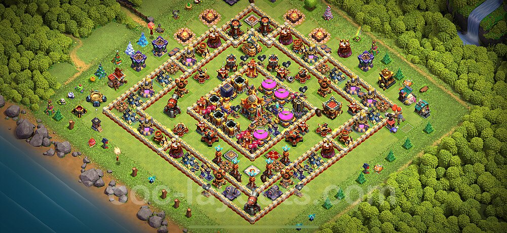 Click the "View in Clash of Clans" button above to copy the base link. Open Clash of Clans, go to your base layout editor, and paste the link to instantly import this defensive layout. Make sure all defenses shown in the preview are available in your Town Hall level before importing.