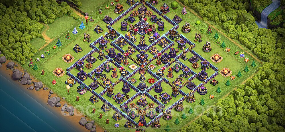 This Town Hall 15 hybrid base offers the best of both worlds - strong resource protection combined with effective trophy defense. The versatile design makes it an excellent choice for players who want to protect their loot while maintaining their trophy count. This balanced approach ensures you don't sacrifice one aspect of defense for another, making it ideal for active players across all league levels. The hybrid layout features centralized resource storages alongside a well-protected Town Hall, with multiple defensive layers that deter both farming raids and trophy pushers. High-value targets are strategically positioned within overlapping defense ranges, forcing attackers to make difficult choices about which objectives to prioritize. The compartmentalized design prevents attackers from easily achieving both loot destruction and the Town Hall kill in a single attack. Defense placement in this hybrid base creates strong coverage against both ground and air attacks. Inferno Towers, X-Bows, and Eagle Artillery work in concert to eliminate threats quickly, while splash damage defenses like Wizard Towers and Bomb Towers counter swarm strategies. The base's funnel-resistant design and strategic trap placement make it effective against popular attack strategies including QC LaLoon (Queen Charge Lava Hound Balloon), Blizzard attacks, and Yeti Smash compositions.