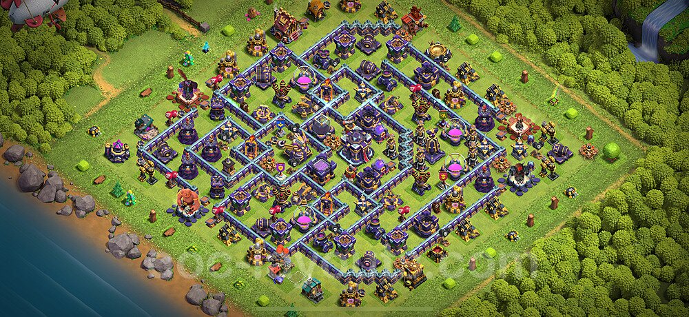 This Town Hall 15 hybrid base offers the best of both worlds - strong resource protection combined with effective trophy defense. The versatile design makes it an excellent choice for players who want to protect their loot while maintaining their trophy count. This balanced approach ensures you don't sacrifice one aspect of defense for another, making it ideal for active players across all league levels. The hybrid layout features centralized resource storages alongside a well-protected Town Hall, with multiple defensive layers that deter both farming raids and trophy pushers. High-value targets are strategically positioned within overlapping defense ranges, forcing attackers to make difficult choices about which objectives to prioritize. The compartmentalized design prevents attackers from easily achieving both loot destruction and the Town Hall kill in a single attack. Defense placement in this hybrid base creates strong coverage against both ground and air attacks. Inferno Towers, X-Bows, and Eagle Artillery work in concert to eliminate threats quickly, while splash damage defenses like Wizard Towers and Bomb Towers counter swarm strategies. The base's funnel-resistant design and strategic trap placement make it effective against popular attack strategies including QC LaLoon (Queen Charge Lava Hound Balloon), Blizzard attacks, and Yeti Smash compositions.