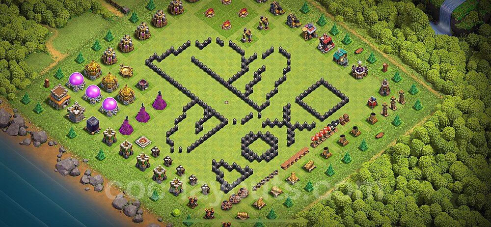 This Town Hall 8 war base is specifically designed to defend against 2-star and 3-star attacks in Clan Wars and Clan War Leagues. The strategic placement of defenses creates multiple compartments that force attackers to use more troops and spells than anticipated. Key defensive structures like Eagle Artillery, Inferno Towers, and X-Bows are positioned to cover crucial sections of the base, making it extremely difficult for opponents to secure a perfect attack. The core of this war base features a centralized Town Hall and Clan Castle, protected by multiple layers of walls and high-damage defenses. This layout forces attackers to commit significant resources just to reach the center, often leaving them without enough firepower to secure the Town Hall destruction. The anti-2-star design ensures that even if attackers breach the outer defenses, they'll struggle to achieve a 50% destruction rating. Air defenses are strategically spread to counter popular air attack strategies like LaLoon (Lava Hound + Balloons) and Electrone (Electro Dragons + Stone Slammer). The symmetrical trap placement and strategic Hidden Tesla positions create deadly surprise elements that can completely derail an attacker's plan. This base has been tested against various meta attack strategies and has consistently proven effective in preventing 3-star attacks.