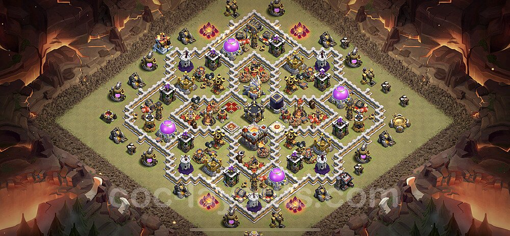 This Town Hall 11 war base is specifically designed to defend against 2-star and 3-star attacks in Clan Wars and Clan War Leagues. The strategic placement of defenses creates multiple compartments that force attackers to use more troops and spells than anticipated. Key defensive structures like Eagle Artillery, Inferno Towers, and X-Bows are positioned to cover crucial sections of the base, making it extremely difficult for opponents to secure a perfect attack. The core of this war base features a centralized Town Hall and Clan Castle, protected by multiple layers of walls and high-damage defenses. This layout forces attackers to commit significant resources just to reach the center, often leaving them without enough firepower to secure the Town Hall destruction. The anti-2-star design ensures that even if attackers breach the outer defenses, they'll struggle to achieve a 50% destruction rating. Air defenses are strategically spread to counter popular air attack strategies like LaLoon (Lava Hound + Balloons) and Electrone (Electro Dragons + Stone Slammer). The symmetrical trap placement and strategic Hidden Tesla positions create deadly surprise elements that can completely derail an attacker's plan. This base has been tested against various meta attack strategies and has consistently proven effective in preventing 3-star attacks.