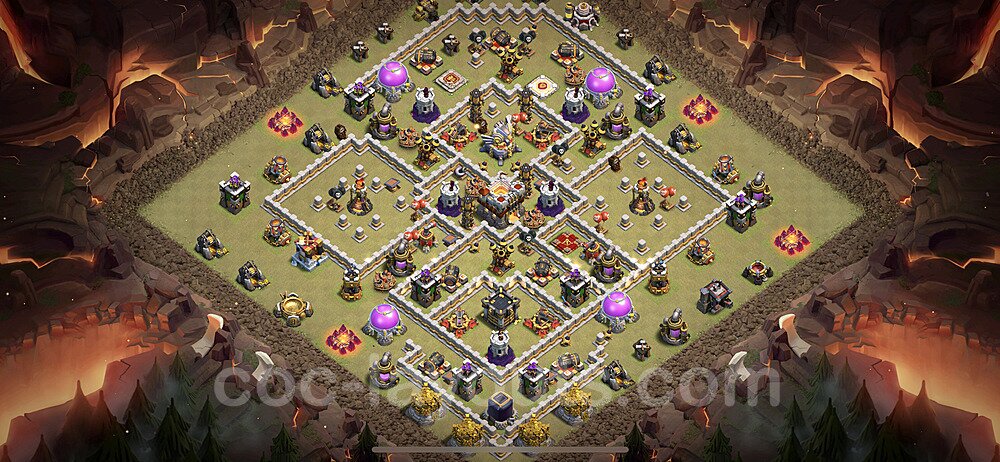 This Town Hall 11 war base is specifically designed to defend against 2-star and 3-star attacks in Clan Wars and Clan War Leagues. The strategic placement of defenses creates multiple compartments that force attackers to use more troops and spells than anticipated. Key defensive structures like Eagle Artillery, Inferno Towers, and X-Bows are positioned to cover crucial sections of the base, making it extremely difficult for opponents to secure a perfect attack. The core of this war base features a centralized Town Hall and Clan Castle, protected by multiple layers of walls and high-damage defenses. This layout forces attackers to commit significant resources just to reach the center, often leaving them without enough firepower to secure the Town Hall destruction. The anti-2-star design ensures that even if attackers breach the outer defenses, they'll struggle to achieve a 50% destruction rating. Air defenses are strategically spread to counter popular air attack strategies like LaLoon (Lava Hound + Balloons) and Electrone (Electro Dragons + Stone Slammer). The symmetrical trap placement and strategic Hidden Tesla positions create deadly surprise elements that can completely derail an attacker's plan. This base has been tested against various meta attack strategies and has consistently proven effective in preventing 3-star attacks.