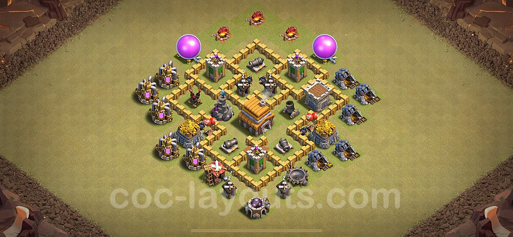 This Town Hall 5 war base is specifically designed to defend against 2-star and 3-star attacks in Clan Wars and Clan War Leagues. The strategic placement of defenses creates multiple compartments that force attackers to use more troops and spells than anticipated. Key defensive structures like Eagle Artillery, Inferno Towers, and X-Bows are positioned to cover crucial sections of the base, making it extremely difficult for opponents to secure a perfect attack. The core of this war base features a centralized Town Hall and Clan Castle, protected by multiple layers of walls and high-damage defenses. This layout forces attackers to commit significant resources just to reach the center, often leaving them without enough firepower to secure the Town Hall destruction. The anti-2-star design ensures that even if attackers breach the outer defenses, they'll struggle to achieve a 50% destruction rating. Air defenses are strategically spread to counter popular air attack strategies like LaLoon (Lava Hound + Balloons) and Electrone (Electro Dragons + Stone Slammer). The symmetrical trap placement and strategic Hidden Tesla positions create deadly surprise elements that can completely derail an attacker's plan. This base has been tested against various meta attack strategies and has consistently proven effective in preventing 3-star attacks.