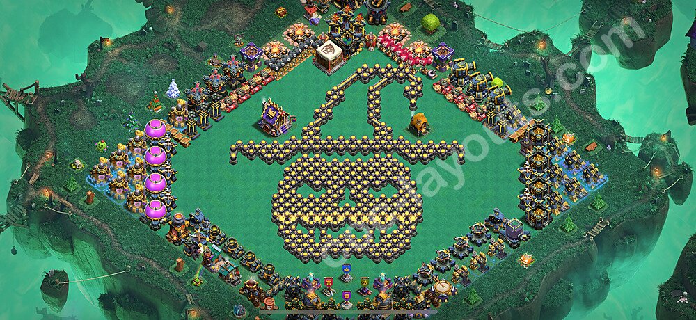 This Town Hall 17 war base is specifically designed to defend against 2-star and 3-star attacks in Clan Wars and Clan War Leagues. The strategic placement of defenses creates multiple compartments that force attackers to use more troops and spells than anticipated. Key defensive structures like Eagle Artillery, Inferno Towers, and X-Bows are positioned to cover crucial sections of the base, making it extremely difficult for opponents to secure a perfect attack. The core of this war base features a centralized Town Hall and Clan Castle, protected by multiple layers of walls and high-damage defenses. This layout forces attackers to commit significant resources just to reach the center, often leaving them without enough firepower to secure the Town Hall destruction. The anti-2-star design ensures that even if attackers breach the outer defenses, they'll struggle to achieve a 50% destruction rating. Air defenses are strategically spread to counter popular air attack strategies like LaLoon (Lava Hound + Balloons) and Electrone (Electro Dragons + Stone Slammer). The symmetrical trap placement and strategic Hidden Tesla positions create deadly surprise elements that can completely derail an attacker's plan. This base has been tested against various meta attack strategies and has consistently proven effective in preventing 3-star attacks.