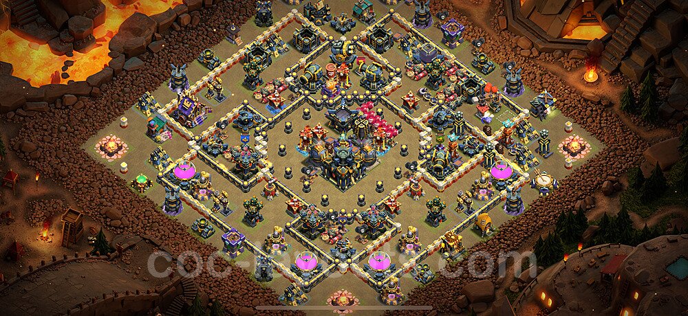 This Town Hall 17 war base is specifically designed to defend against 2-star and 3-star attacks in Clan Wars and Clan War Leagues. The strategic placement of defenses creates multiple compartments that force attackers to use more troops and spells than anticipated. Key defensive structures like Eagle Artillery, Inferno Towers, and X-Bows are positioned to cover crucial sections of the base, making it extremely difficult for opponents to secure a perfect attack. The core of this war base features a centralized Town Hall and Clan Castle, protected by multiple layers of walls and high-damage defenses. This layout forces attackers to commit significant resources just to reach the center, often leaving them without enough firepower to secure the Town Hall destruction. The anti-2-star design ensures that even if attackers breach the outer defenses, they'll struggle to achieve a 50% destruction rating. Air defenses are strategically spread to counter popular air attack strategies like LaLoon (Lava Hound + Balloons) and Electrone (Electro Dragons + Stone Slammer). The symmetrical trap placement and strategic Hidden Tesla positions create deadly surprise elements that can completely derail an attacker's plan. This base has been tested against various meta attack strategies and has consistently proven effective in preventing 3-star attacks.