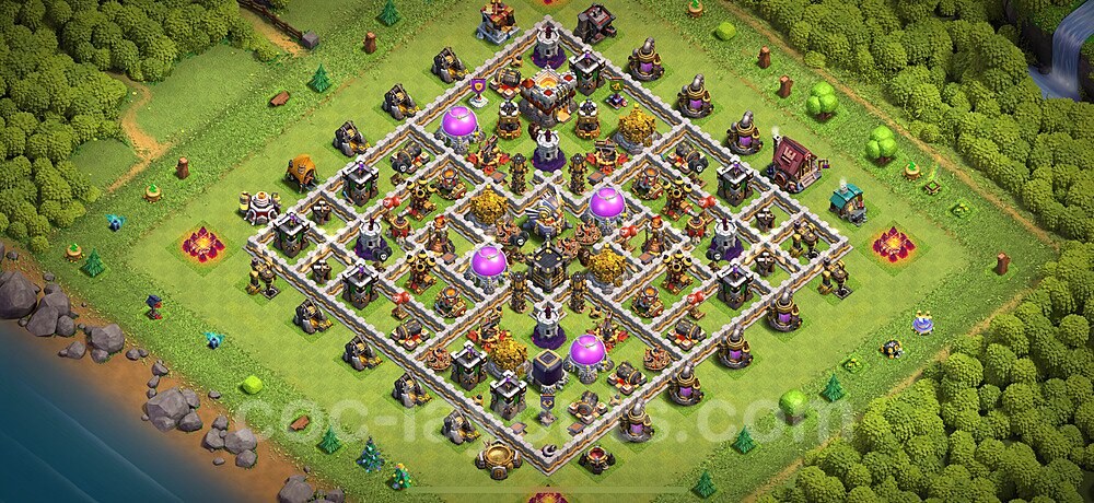 Click the "View in Clash of Clans" button above to copy the base link. Open Clash of Clans, go to your base layout editor, and paste the link to instantly import this defensive layout. Make sure all defenses shown in the preview are available in your Town Hall level before importing.