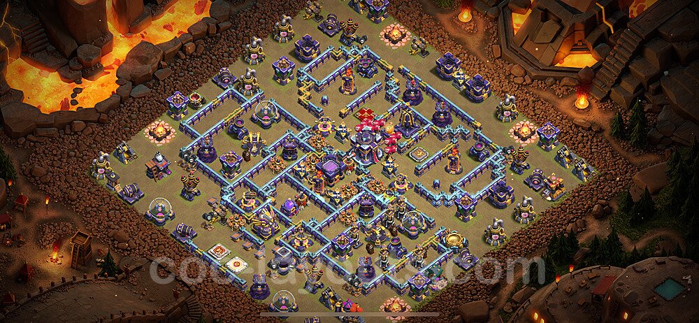 This Town Hall 15 war base is specifically designed to defend against 2-star and 3-star attacks in Clan Wars and Clan War Leagues. The strategic placement of defenses creates multiple compartments that force attackers to use more troops and spells than anticipated. Key defensive structures like Eagle Artillery, Inferno Towers, and X-Bows are positioned to cover crucial sections of the base, making it extremely difficult for opponents to secure a perfect attack. The core of this war base features a centralized Town Hall and Clan Castle, protected by multiple layers of walls and high-damage defenses. This layout forces attackers to commit significant resources just to reach the center, often leaving them without enough firepower to secure the Town Hall destruction. The anti-2-star design ensures that even if attackers breach the outer defenses, they'll struggle to achieve a 50% destruction rating. Air defenses are strategically spread to counter popular air attack strategies like LaLoon (Lava Hound + Balloons) and Electrone (Electro Dragons + Stone Slammer). The symmetrical trap placement and strategic Hidden Tesla positions create deadly surprise elements that can completely derail an attacker's plan. This base has been tested against various meta attack strategies and has consistently proven effective in preventing 3-star attacks.