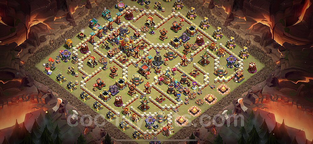 This Town Hall 16 war base is specifically designed to defend against 2-star and 3-star attacks in Clan Wars and Clan War Leagues. The strategic placement of defenses creates multiple compartments that force attackers to use more troops and spells than anticipated. Key defensive structures like Eagle Artillery, Inferno Towers, and X-Bows are positioned to cover crucial sections of the base, making it extremely difficult for opponents to secure a perfect attack. The core of this war base features a centralized Town Hall and Clan Castle, protected by multiple layers of walls and high-damage defenses. This layout forces attackers to commit significant resources just to reach the center, often leaving them without enough firepower to secure the Town Hall destruction. The anti-2-star design ensures that even if attackers breach the outer defenses, they'll struggle to achieve a 50% destruction rating. Air defenses are strategically spread to counter popular air attack strategies like LaLoon (Lava Hound + Balloons) and Electrone (Electro Dragons + Stone Slammer). The symmetrical trap placement and strategic Hidden Tesla positions create deadly surprise elements that can completely derail an attacker's plan. This base has been tested against various meta attack strategies and has consistently proven effective in preventing 3-star attacks.