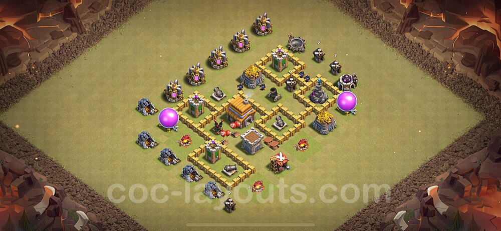 This Town Hall 5 war base is specifically designed to defend against 2-star and 3-star attacks in Clan Wars and Clan War Leagues. The strategic placement of defenses creates multiple compartments that force attackers to use more troops and spells than anticipated. Key defensive structures like Eagle Artillery, Inferno Towers, and X-Bows are positioned to cover crucial sections of the base, making it extremely difficult for opponents to secure a perfect attack. The core of this war base features a centralized Town Hall and Clan Castle, protected by multiple layers of walls and high-damage defenses. This layout forces attackers to commit significant resources just to reach the center, often leaving them without enough firepower to secure the Town Hall destruction. The anti-2-star design ensures that even if attackers breach the outer defenses, they'll struggle to achieve a 50% destruction rating. Air defenses are strategically spread to counter popular air attack strategies like LaLoon (Lava Hound + Balloons) and Electrone (Electro Dragons + Stone Slammer). The symmetrical trap placement and strategic Hidden Tesla positions create deadly surprise elements that can completely derail an attacker's plan. This base has been tested against various meta attack strategies and has consistently proven effective in preventing 3-star attacks.