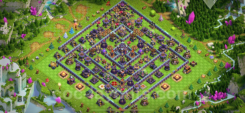 This Town Hall 15 war base is specifically designed to defend against 2-star and 3-star attacks in Clan Wars and Clan War Leagues. The strategic placement of defenses creates multiple compartments that force attackers to use more troops and spells than anticipated. Key defensive structures like Eagle Artillery, Inferno Towers, and X-Bows are positioned to cover crucial sections of the base, making it extremely difficult for opponents to secure a perfect attack. The core of this war base features a centralized Town Hall and Clan Castle, protected by multiple layers of walls and high-damage defenses. This layout forces attackers to commit significant resources just to reach the center, often leaving them without enough firepower to secure the Town Hall destruction. The anti-2-star design ensures that even if attackers breach the outer defenses, they'll struggle to achieve a 50% destruction rating. Air defenses are strategically spread to counter popular air attack strategies like LaLoon (Lava Hound + Balloons) and Electrone (Electro Dragons + Stone Slammer). The symmetrical trap placement and strategic Hidden Tesla positions create deadly surprise elements that can completely derail an attacker's plan. This base has been tested against various meta attack strategies and has consistently proven effective in preventing 3-star attacks.