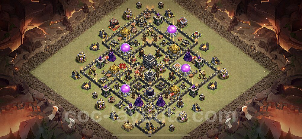 This Town Hall 9 hybrid base offers the best of both worlds - strong resource protection combined with effective trophy defense. The versatile design makes it an excellent choice for players who want to protect their loot while maintaining their trophy count. This balanced approach ensures you don't sacrifice one aspect of defense for another, making it ideal for active players across all league levels. The hybrid layout features centralized resource storages alongside a well-protected Town Hall, with multiple defensive layers that deter both farming raids and trophy pushers. High-value targets are strategically positioned within overlapping defense ranges, forcing attackers to make difficult choices about which objectives to prioritize. The compartmentalized design prevents attackers from easily achieving both loot destruction and the Town Hall kill in a single attack. Defense placement in this hybrid base creates strong coverage against both ground and air attacks. Inferno Towers, X-Bows, and Eagle Artillery work in concert to eliminate threats quickly, while splash damage defenses like Wizard Towers and Bomb Towers counter swarm strategies. The base's funnel-resistant design and strategic trap placement make it effective against popular attack strategies including QC LaLoon (Queen Charge Lava Hound Balloon), Blizzard attacks, and Yeti Smash compositions.