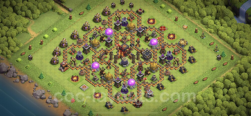 This Town Hall 10 farming base is optimized to protect your resources including Gold, Elixir, and Dark Elixir from raiders. The layout features centralized storages with multiple compartments that make it extremely difficult for attackers to steal large amounts of resources in a single raid. This design philosophy prioritizes resource protection over trophies, making it ideal for players focused on upgrading their village. The strategic placement of resource storages ensures they are well-protected by high-damage defenses like X-Bows, Inferno Towers, and Eagle Artillery. Each storage is surrounded by multiple wall layers and defensive structures, forcing attackers to invest heavily in troops and spells to reach your loot. The farming base design also incorporates strategic dead zones where attackers' troops tend to path inefficiently, wasting time and taking heavy damage from nearby defenses. Collectors and mines are positioned on the outer edges as "bait" while your main storages remain heavily protected in the core. This layout has proven effective against common farming strategies like BARCH (Barbarians + Archers), GoWiPe (Golems + Wizards + Pekka), and mass Miner attacks. The compartmentalized design prevents attackers from funneling straight to your resources, ensuring you maintain your hard-earned loot for important upgrades.