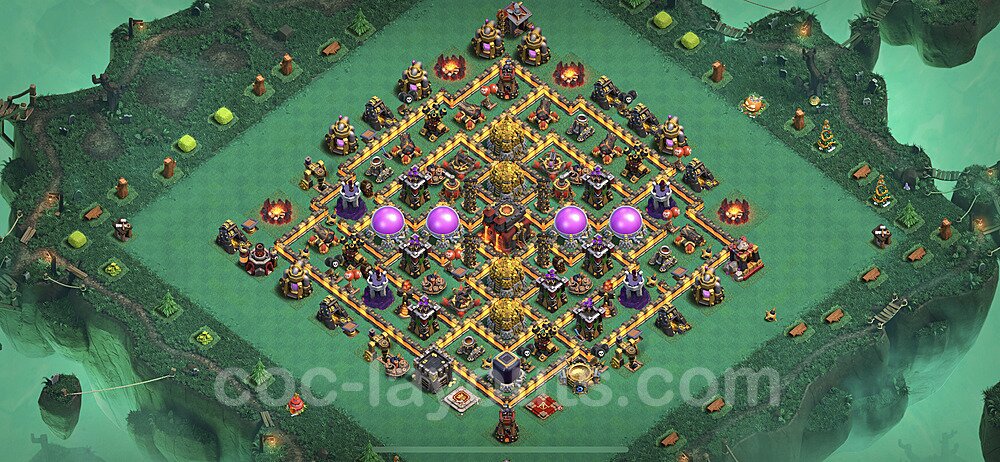 This Town Hall 10 farming base is optimized to protect your resources including Gold, Elixir, and Dark Elixir from raiders. The layout features centralized storages with multiple compartments that make it extremely difficult for attackers to steal large amounts of resources in a single raid. This design philosophy prioritizes resource protection over trophies, making it ideal for players focused on upgrading their village. The strategic placement of resource storages ensures they are well-protected by high-damage defenses like X-Bows, Inferno Towers, and Eagle Artillery. Each storage is surrounded by multiple wall layers and defensive structures, forcing attackers to invest heavily in troops and spells to reach your loot. The farming base design also incorporates strategic dead zones where attackers' troops tend to path inefficiently, wasting time and taking heavy damage from nearby defenses. Collectors and mines are positioned on the outer edges as "bait" while your main storages remain heavily protected in the core. This layout has proven effective against common farming strategies like BARCH (Barbarians + Archers), GoWiPe (Golems + Wizards + Pekka), and mass Miner attacks. The compartmentalized design prevents attackers from funneling straight to your resources, ensuring you maintain your hard-earned loot for important upgrades.