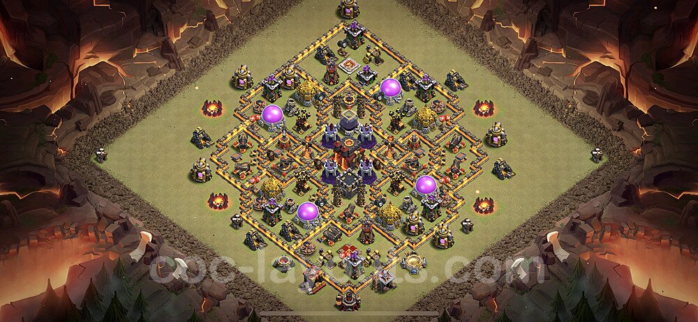 This Town Hall 10 hybrid base offers the best of both worlds - strong resource protection combined with effective trophy defense. The versatile design makes it an excellent choice for players who want to protect their loot while maintaining their trophy count. This balanced approach ensures you don't sacrifice one aspect of defense for another, making it ideal for active players across all league levels. The hybrid layout features centralized resource storages alongside a well-protected Town Hall, with multiple defensive layers that deter both farming raids and trophy pushers. High-value targets are strategically positioned within overlapping defense ranges, forcing attackers to make difficult choices about which objectives to prioritize. The compartmentalized design prevents attackers from easily achieving both loot destruction and the Town Hall kill in a single attack. Defense placement in this hybrid base creates strong coverage against both ground and air attacks. Inferno Towers, X-Bows, and Eagle Artillery work in concert to eliminate threats quickly, while splash damage defenses like Wizard Towers and Bomb Towers counter swarm strategies. The base's funnel-resistant design and strategic trap placement make it effective against popular attack strategies including QC LaLoon (Queen Charge Lava Hound Balloon), Blizzard attacks, and Yeti Smash compositions.