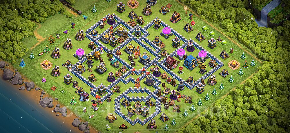 This Town Hall 12 farming base is optimized to protect your resources including Gold, Elixir, and Dark Elixir from raiders. The layout features centralized storages with multiple compartments that make it extremely difficult for attackers to steal large amounts of resources in a single raid. This design philosophy prioritizes resource protection over trophies, making it ideal for players focused on upgrading their village. The strategic placement of resource storages ensures they are well-protected by high-damage defenses like X-Bows, Inferno Towers, and Eagle Artillery. Each storage is surrounded by multiple wall layers and defensive structures, forcing attackers to invest heavily in troops and spells to reach your loot. The farming base design also incorporates strategic dead zones where attackers' troops tend to path inefficiently, wasting time and taking heavy damage from nearby defenses. Collectors and mines are positioned on the outer edges as "bait" while your main storages remain heavily protected in the core. This layout has proven effective against common farming strategies like BARCH (Barbarians + Archers), GoWiPe (Golems + Wizards + Pekka), and mass Miner attacks. The compartmentalized design prevents attackers from funneling straight to your resources, ensuring you maintain your hard-earned loot for important upgrades.