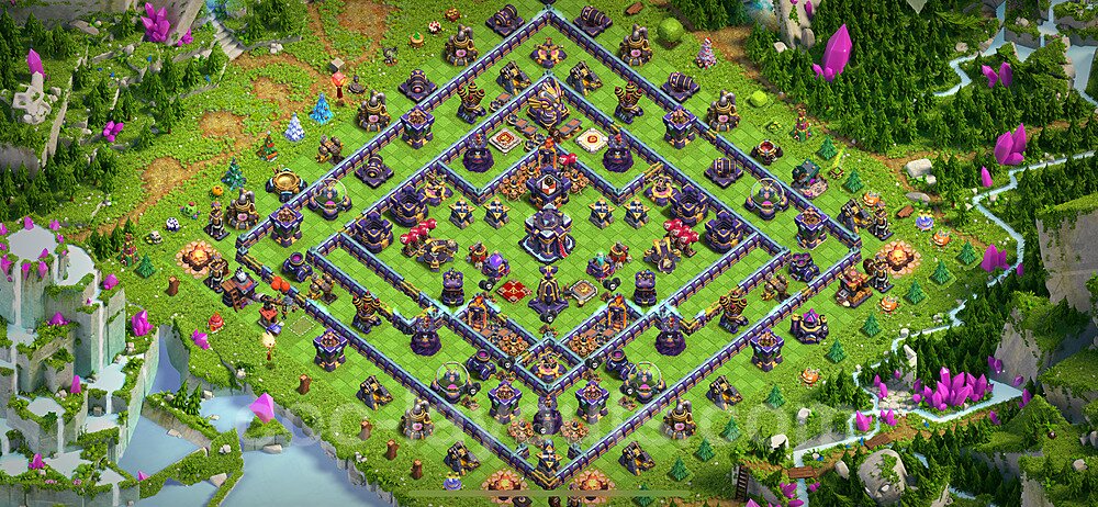 This Town Hall 15 hybrid base offers the best of both worlds - strong resource protection combined with effective trophy defense. The versatile design makes it an excellent choice for players who want to protect their loot while maintaining their trophy count. This balanced approach ensures you don't sacrifice one aspect of defense for another, making it ideal for active players across all league levels. The hybrid layout features centralized resource storages alongside a well-protected Town Hall, with multiple defensive layers that deter both farming raids and trophy pushers. High-value targets are strategically positioned within overlapping defense ranges, forcing attackers to make difficult choices about which objectives to prioritize. The compartmentalized design prevents attackers from easily achieving both loot destruction and the Town Hall kill in a single attack. Defense placement in this hybrid base creates strong coverage against both ground and air attacks. Inferno Towers, X-Bows, and Eagle Artillery work in concert to eliminate threats quickly, while splash damage defenses like Wizard Towers and Bomb Towers counter swarm strategies. The base's funnel-resistant design and strategic trap placement make it effective against popular attack strategies including QC LaLoon (Queen Charge Lava Hound Balloon), Blizzard attacks, and Yeti Smash compositions.