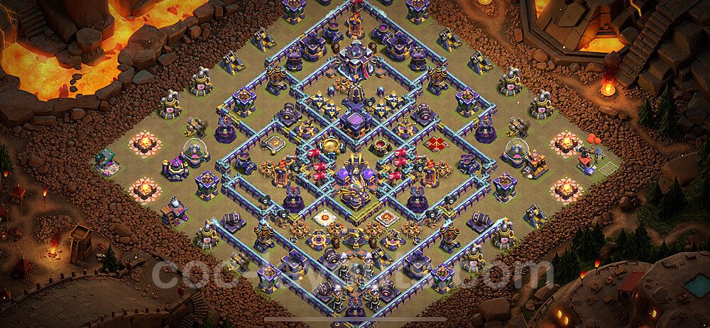This Town Hall 15 war base is specifically designed to defend against 2-star and 3-star attacks in Clan Wars and Clan War Leagues. The strategic placement of defenses creates multiple compartments that force attackers to use more troops and spells than anticipated. Key defensive structures like Eagle Artillery, Inferno Towers, and X-Bows are positioned to cover crucial sections of the base, making it extremely difficult for opponents to secure a perfect attack. The core of this war base features a centralized Town Hall and Clan Castle, protected by multiple layers of walls and high-damage defenses. This layout forces attackers to commit significant resources just to reach the center, often leaving them without enough firepower to secure the Town Hall destruction. The anti-2-star design ensures that even if attackers breach the outer defenses, they'll struggle to achieve a 50% destruction rating. Air defenses are strategically spread to counter popular air attack strategies like LaLoon (Lava Hound + Balloons) and Electrone (Electro Dragons + Stone Slammer). The symmetrical trap placement and strategic Hidden Tesla positions create deadly surprise elements that can completely derail an attacker's plan. This base has been tested against various meta attack strategies and has consistently proven effective in preventing 3-star attacks.