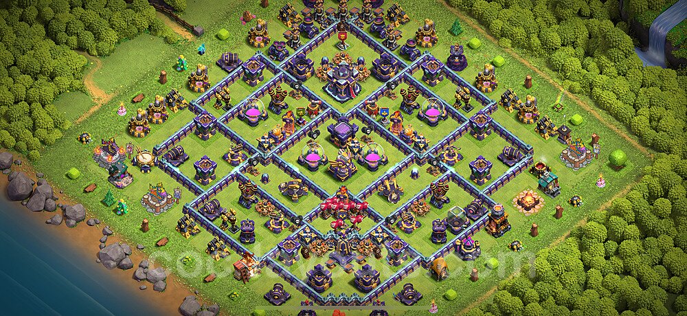 This Town Hall 15 hybrid base offers the best of both worlds - strong resource protection combined with effective trophy defense. The versatile design makes it an excellent choice for players who want to protect their loot while maintaining their trophy count. This balanced approach ensures you don't sacrifice one aspect of defense for another, making it ideal for active players across all league levels. The hybrid layout features centralized resource storages alongside a well-protected Town Hall, with multiple defensive layers that deter both farming raids and trophy pushers. High-value targets are strategically positioned within overlapping defense ranges, forcing attackers to make difficult choices about which objectives to prioritize. The compartmentalized design prevents attackers from easily achieving both loot destruction and the Town Hall kill in a single attack. Defense placement in this hybrid base creates strong coverage against both ground and air attacks. Inferno Towers, X-Bows, and Eagle Artillery work in concert to eliminate threats quickly, while splash damage defenses like Wizard Towers and Bomb Towers counter swarm strategies. The base's funnel-resistant design and strategic trap placement make it effective against popular attack strategies including QC LaLoon (Queen Charge Lava Hound Balloon), Blizzard attacks, and Yeti Smash compositions.