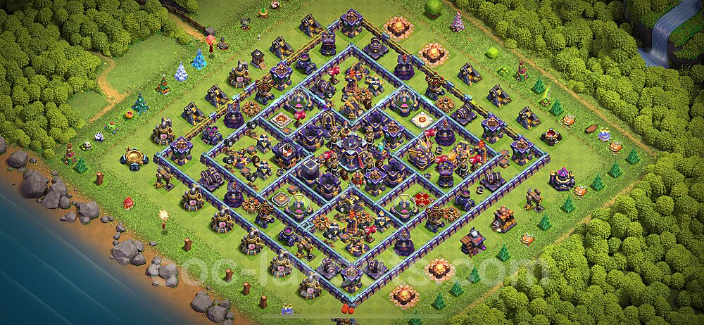 This Town Hall 15 hybrid base offers the best of both worlds - strong resource protection combined with effective trophy defense. The versatile design makes it an excellent choice for players who want to protect their loot while maintaining their trophy count. This balanced approach ensures you don't sacrifice one aspect of defense for another, making it ideal for active players across all league levels. The hybrid layout features centralized resource storages alongside a well-protected Town Hall, with multiple defensive layers that deter both farming raids and trophy pushers. High-value targets are strategically positioned within overlapping defense ranges, forcing attackers to make difficult choices about which objectives to prioritize. The compartmentalized design prevents attackers from easily achieving both loot destruction and the Town Hall kill in a single attack. Defense placement in this hybrid base creates strong coverage against both ground and air attacks. Inferno Towers, X-Bows, and Eagle Artillery work in concert to eliminate threats quickly, while splash damage defenses like Wizard Towers and Bomb Towers counter swarm strategies. The base's funnel-resistant design and strategic trap placement make it effective against popular attack strategies including QC LaLoon (Queen Charge Lava Hound Balloon), Blizzard attacks, and Yeti Smash compositions.