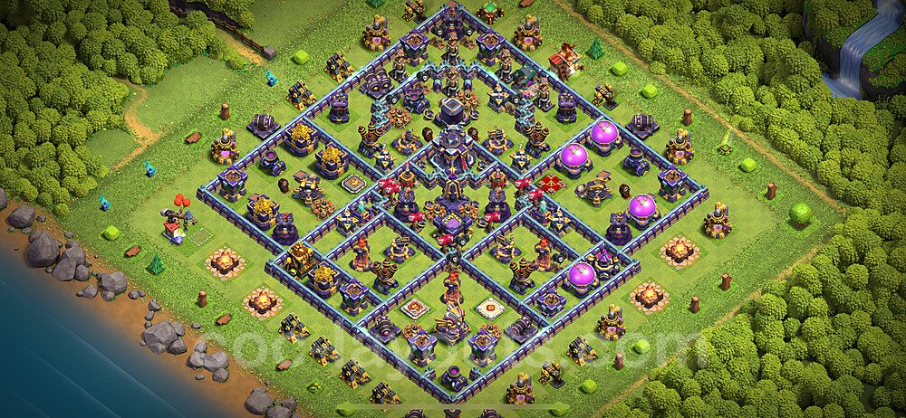This Town Hall 15 farming base is optimized to protect your resources including Gold, Elixir, and Dark Elixir from raiders. The layout features centralized storages with multiple compartments that make it extremely difficult for attackers to steal large amounts of resources in a single raid. This design philosophy prioritizes resource protection over trophies, making it ideal for players focused on upgrading their village. The strategic placement of resource storages ensures they are well-protected by high-damage defenses like X-Bows, Inferno Towers, and Eagle Artillery. Each storage is surrounded by multiple wall layers and defensive structures, forcing attackers to invest heavily in troops and spells to reach your loot. The farming base design also incorporates strategic dead zones where attackers' troops tend to path inefficiently, wasting time and taking heavy damage from nearby defenses. Collectors and mines are positioned on the outer edges as "bait" while your main storages remain heavily protected in the core. This layout has proven effective against common farming strategies like BARCH (Barbarians + Archers), GoWiPe (Golems + Wizards + Pekka), and mass Miner attacks. The compartmentalized design prevents attackers from funneling straight to your resources, ensuring you maintain your hard-earned loot for important upgrades.