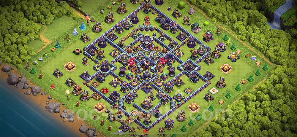 This Town Hall 15 hybrid base offers the best of both worlds - strong resource protection combined with effective trophy defense. The versatile design makes it an excellent choice for players who want to protect their loot while maintaining their trophy count. This balanced approach ensures you don't sacrifice one aspect of defense for another, making it ideal for active players across all league levels. The hybrid layout features centralized resource storages alongside a well-protected Town Hall, with multiple defensive layers that deter both farming raids and trophy pushers. High-value targets are strategically positioned within overlapping defense ranges, forcing attackers to make difficult choices about which objectives to prioritize. The compartmentalized design prevents attackers from easily achieving both loot destruction and the Town Hall kill in a single attack. Defense placement in this hybrid base creates strong coverage against both ground and air attacks. Inferno Towers, X-Bows, and Eagle Artillery work in concert to eliminate threats quickly, while splash damage defenses like Wizard Towers and Bomb Towers counter swarm strategies. The base's funnel-resistant design and strategic trap placement make it effective against popular attack strategies including QC LaLoon (Queen Charge Lava Hound Balloon), Blizzard attacks, and Yeti Smash compositions.