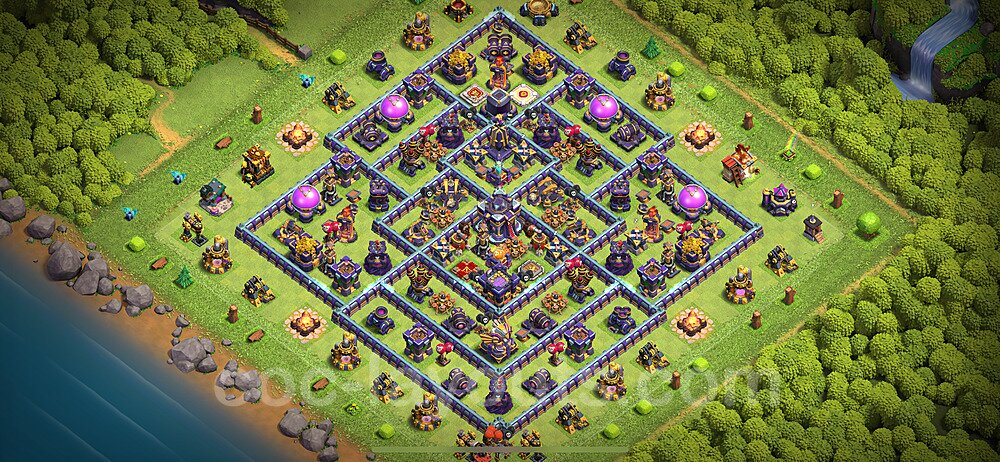 Click the "View in Clash of Clans" button above to copy the base link. Open Clash of Clans, go to your base layout editor, and paste the link to instantly import this defensive layout. Make sure all defenses shown in the preview are available in your Town Hall level before importing.