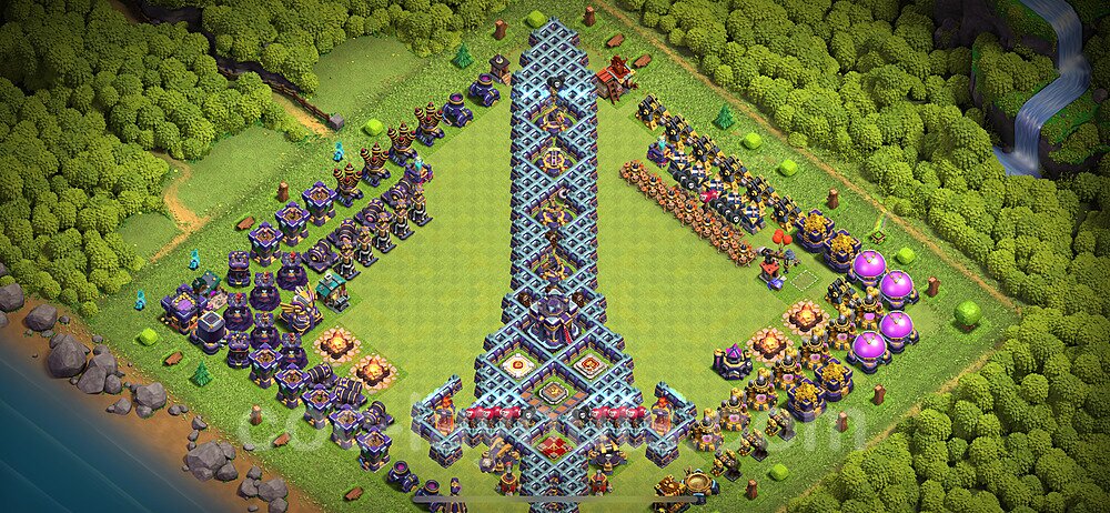 This Town Hall 15 war base is specifically designed to defend against 2-star and 3-star attacks in Clan Wars and Clan War Leagues. The strategic placement of defenses creates multiple compartments that force attackers to use more troops and spells than anticipated. Key defensive structures like Eagle Artillery, Inferno Towers, and X-Bows are positioned to cover crucial sections of the base, making it extremely difficult for opponents to secure a perfect attack. The core of this war base features a centralized Town Hall and Clan Castle, protected by multiple layers of walls and high-damage defenses. This layout forces attackers to commit significant resources just to reach the center, often leaving them without enough firepower to secure the Town Hall destruction. The anti-2-star design ensures that even if attackers breach the outer defenses, they'll struggle to achieve a 50% destruction rating. Air defenses are strategically spread to counter popular air attack strategies like LaLoon (Lava Hound + Balloons) and Electrone (Electro Dragons + Stone Slammer). The symmetrical trap placement and strategic Hidden Tesla positions create deadly surprise elements that can completely derail an attacker's plan. This base has been tested against various meta attack strategies and has consistently proven effective in preventing 3-star attacks.