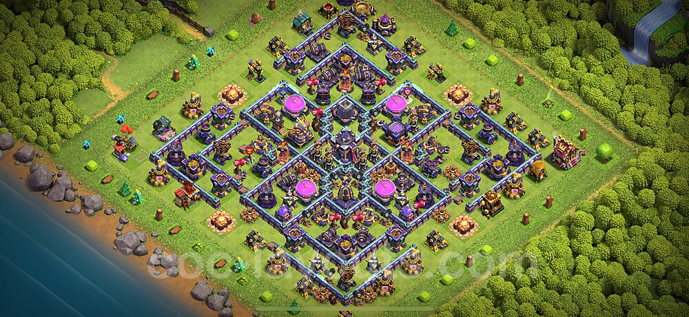 This Town Hall 15 war base is specifically designed to defend against 2-star and 3-star attacks in Clan Wars and Clan War Leagues. The strategic placement of defenses creates multiple compartments that force attackers to use more troops and spells than anticipated. Key defensive structures like Eagle Artillery, Inferno Towers, and X-Bows are positioned to cover crucial sections of the base, making it extremely difficult for opponents to secure a perfect attack. The core of this war base features a centralized Town Hall and Clan Castle, protected by multiple layers of walls and high-damage defenses. This layout forces attackers to commit significant resources just to reach the center, often leaving them without enough firepower to secure the Town Hall destruction. The anti-2-star design ensures that even if attackers breach the outer defenses, they'll struggle to achieve a 50% destruction rating. Air defenses are strategically spread to counter popular air attack strategies like LaLoon (Lava Hound + Balloons) and Electrone (Electro Dragons + Stone Slammer). The symmetrical trap placement and strategic Hidden Tesla positions create deadly surprise elements that can completely derail an attacker's plan. This base has been tested against various meta attack strategies and has consistently proven effective in preventing 3-star attacks.