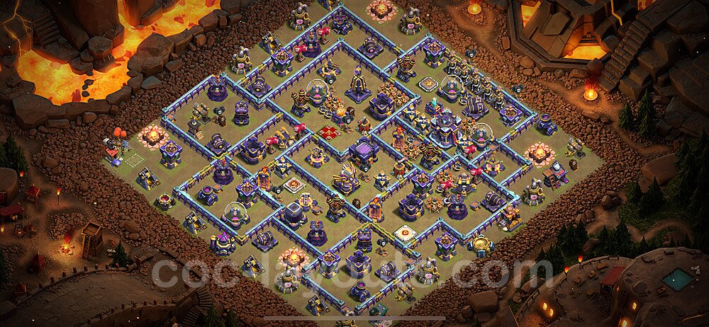 This Town Hall 15 war base is specifically designed to defend against 2-star and 3-star attacks in Clan Wars and Clan War Leagues. The strategic placement of defenses creates multiple compartments that force attackers to use more troops and spells than anticipated. Key defensive structures like Eagle Artillery, Inferno Towers, and X-Bows are positioned to cover crucial sections of the base, making it extremely difficult for opponents to secure a perfect attack. The core of this war base features a centralized Town Hall and Clan Castle, protected by multiple layers of walls and high-damage defenses. This layout forces attackers to commit significant resources just to reach the center, often leaving them without enough firepower to secure the Town Hall destruction. The anti-2-star design ensures that even if attackers breach the outer defenses, they'll struggle to achieve a 50% destruction rating. Air defenses are strategically spread to counter popular air attack strategies like LaLoon (Lava Hound + Balloons) and Electrone (Electro Dragons + Stone Slammer). The symmetrical trap placement and strategic Hidden Tesla positions create deadly surprise elements that can completely derail an attacker's plan. This base has been tested against various meta attack strategies and has consistently proven effective in preventing 3-star attacks.