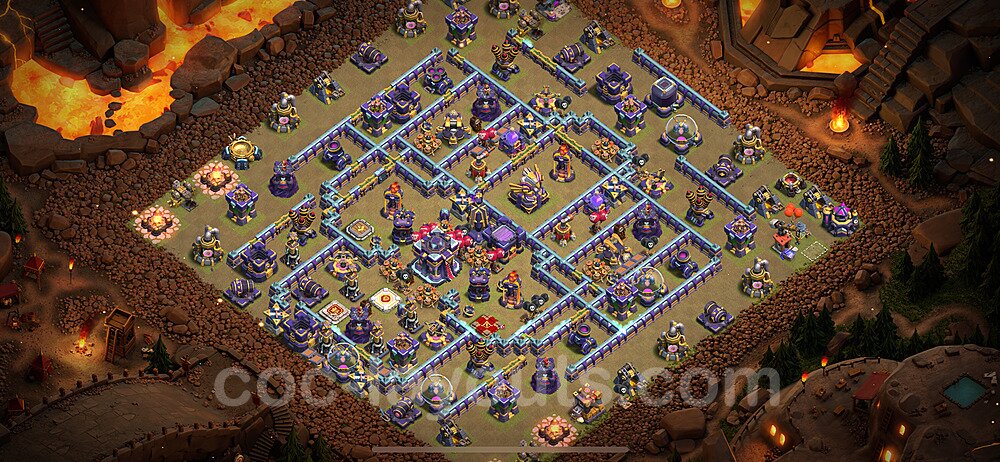 This Town Hall 15 war base is specifically designed to defend against 2-star and 3-star attacks in Clan Wars and Clan War Leagues. The strategic placement of defenses creates multiple compartments that force attackers to use more troops and spells than anticipated. Key defensive structures like Eagle Artillery, Inferno Towers, and X-Bows are positioned to cover crucial sections of the base, making it extremely difficult for opponents to secure a perfect attack. The core of this war base features a centralized Town Hall and Clan Castle, protected by multiple layers of walls and high-damage defenses. This layout forces attackers to commit significant resources just to reach the center, often leaving them without enough firepower to secure the Town Hall destruction. The anti-2-star design ensures that even if attackers breach the outer defenses, they'll struggle to achieve a 50% destruction rating. Air defenses are strategically spread to counter popular air attack strategies like LaLoon (Lava Hound + Balloons) and Electrone (Electro Dragons + Stone Slammer). The symmetrical trap placement and strategic Hidden Tesla positions create deadly surprise elements that can completely derail an attacker's plan. This base has been tested against various meta attack strategies and has consistently proven effective in preventing 3-star attacks.