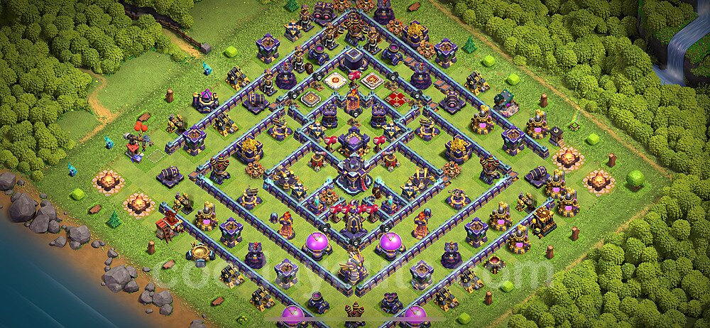 This Town Hall 15 war base is specifically designed to defend against 2-star and 3-star attacks in Clan Wars and Clan War Leagues. The strategic placement of defenses creates multiple compartments that force attackers to use more troops and spells than anticipated. Key defensive structures like Eagle Artillery, Inferno Towers, and X-Bows are positioned to cover crucial sections of the base, making it extremely difficult for opponents to secure a perfect attack. The core of this war base features a centralized Town Hall and Clan Castle, protected by multiple layers of walls and high-damage defenses. This layout forces attackers to commit significant resources just to reach the center, often leaving them without enough firepower to secure the Town Hall destruction. The anti-2-star design ensures that even if attackers breach the outer defenses, they'll struggle to achieve a 50% destruction rating. Air defenses are strategically spread to counter popular air attack strategies like LaLoon (Lava Hound + Balloons) and Electrone (Electro Dragons + Stone Slammer). The symmetrical trap placement and strategic Hidden Tesla positions create deadly surprise elements that can completely derail an attacker's plan. This base has been tested against various meta attack strategies and has consistently proven effective in preventing 3-star attacks.