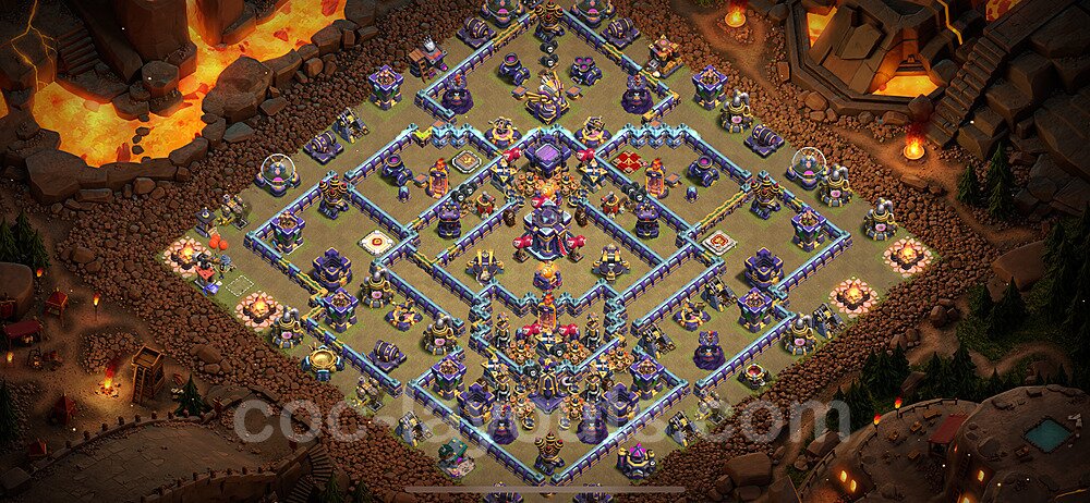This Town Hall 15 war base is specifically designed to defend against 2-star and 3-star attacks in Clan Wars and Clan War Leagues. The strategic placement of defenses creates multiple compartments that force attackers to use more troops and spells than anticipated. Key defensive structures like Eagle Artillery, Inferno Towers, and X-Bows are positioned to cover crucial sections of the base, making it extremely difficult for opponents to secure a perfect attack. The core of this war base features a centralized Town Hall and Clan Castle, protected by multiple layers of walls and high-damage defenses. This layout forces attackers to commit significant resources just to reach the center, often leaving them without enough firepower to secure the Town Hall destruction. The anti-2-star design ensures that even if attackers breach the outer defenses, they'll struggle to achieve a 50% destruction rating. Air defenses are strategically spread to counter popular air attack strategies like LaLoon (Lava Hound + Balloons) and Electrone (Electro Dragons + Stone Slammer). The symmetrical trap placement and strategic Hidden Tesla positions create deadly surprise elements that can completely derail an attacker's plan. This base has been tested against various meta attack strategies and has consistently proven effective in preventing 3-star attacks.