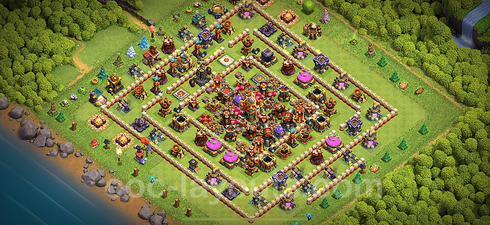 This Town Hall 16 farming base is optimized to protect your resources including Gold, Elixir, and Dark Elixir from raiders. The layout features centralized storages with multiple compartments that make it extremely difficult for attackers to steal large amounts of resources in a single raid. This design philosophy prioritizes resource protection over trophies, making it ideal for players focused on upgrading their village. The strategic placement of resource storages ensures they are well-protected by high-damage defenses like X-Bows, Inferno Towers, and Eagle Artillery. Each storage is surrounded by multiple wall layers and defensive structures, forcing attackers to invest heavily in troops and spells to reach your loot. The farming base design also incorporates strategic dead zones where attackers' troops tend to path inefficiently, wasting time and taking heavy damage from nearby defenses. Collectors and mines are positioned on the outer edges as "bait" while your main storages remain heavily protected in the core. This layout has proven effective against common farming strategies like BARCH (Barbarians + Archers), GoWiPe (Golems + Wizards + Pekka), and mass Miner attacks. The compartmentalized design prevents attackers from funneling straight to your resources, ensuring you maintain your hard-earned loot for important upgrades.