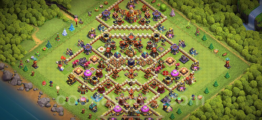This Town Hall 16 farming base is optimized to protect your resources including Gold, Elixir, and Dark Elixir from raiders. The layout features centralized storages with multiple compartments that make it extremely difficult for attackers to steal large amounts of resources in a single raid. This design philosophy prioritizes resource protection over trophies, making it ideal for players focused on upgrading their village. The strategic placement of resource storages ensures they are well-protected by high-damage defenses like X-Bows, Inferno Towers, and Eagle Artillery. Each storage is surrounded by multiple wall layers and defensive structures, forcing attackers to invest heavily in troops and spells to reach your loot. The farming base design also incorporates strategic dead zones where attackers' troops tend to path inefficiently, wasting time and taking heavy damage from nearby defenses. Collectors and mines are positioned on the outer edges as "bait" while your main storages remain heavily protected in the core. This layout has proven effective against common farming strategies like BARCH (Barbarians + Archers), GoWiPe (Golems + Wizards + Pekka), and mass Miner attacks. The compartmentalized design prevents attackers from funneling straight to your resources, ensuring you maintain your hard-earned loot for important upgrades.