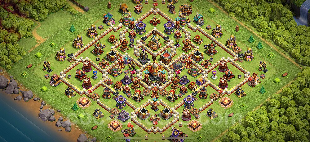 Click the "View in Clash of Clans" button above to copy the base link. Open Clash of Clans, go to your base layout editor, and paste the link to instantly import this defensive layout. Make sure all defenses shown in the preview are available in your Town Hall level before importing.